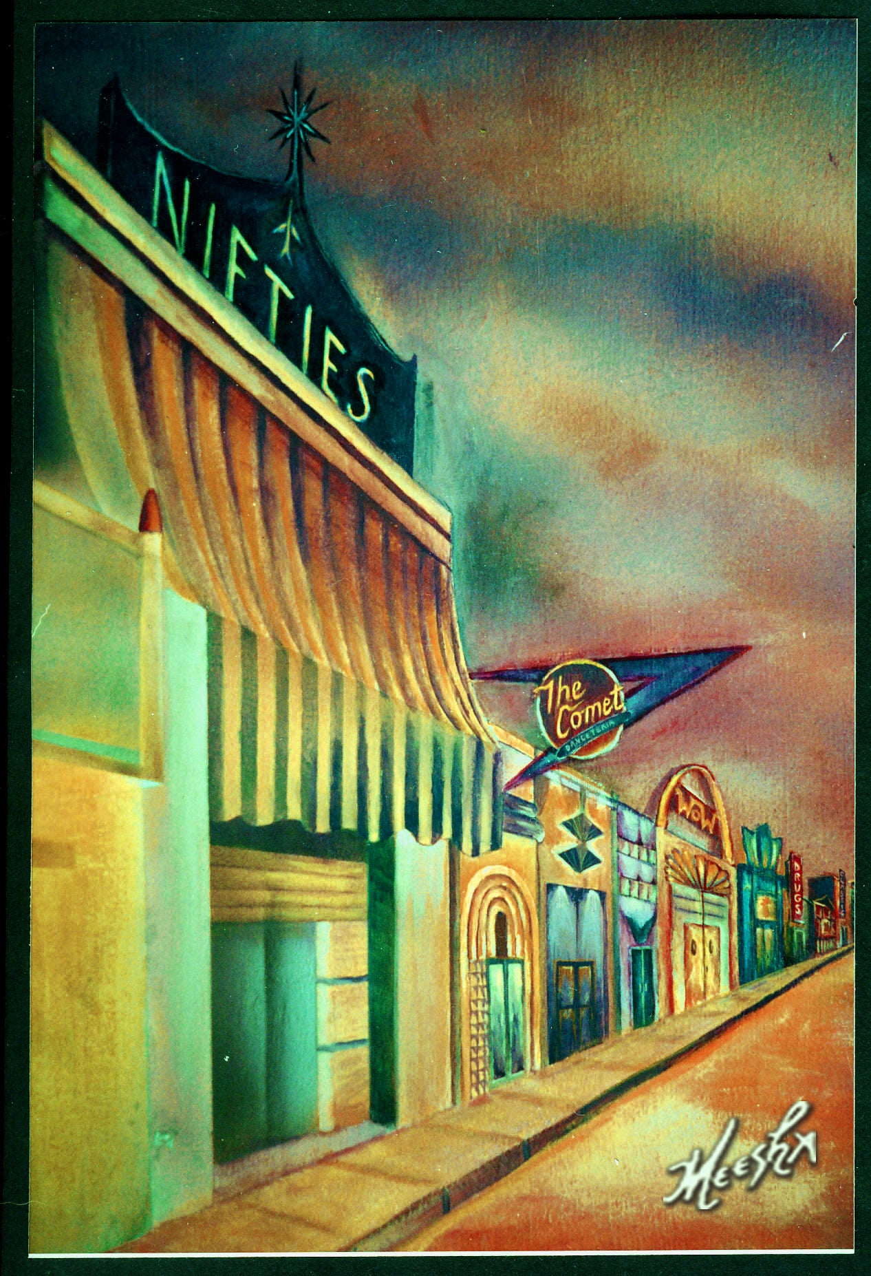 Close up of corner of 1950s street mural