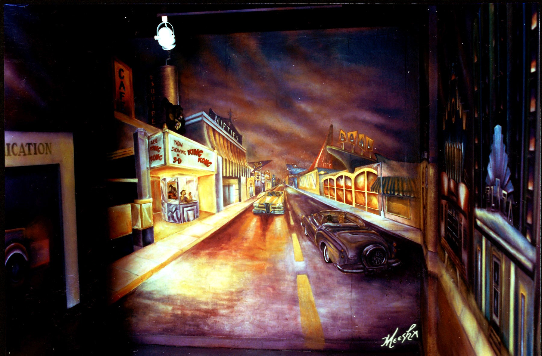 Close up of front wall of 1950s street mural