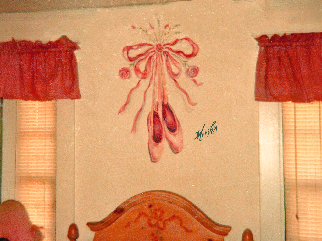 Hanging bow mural with elegant ballet toe shoes