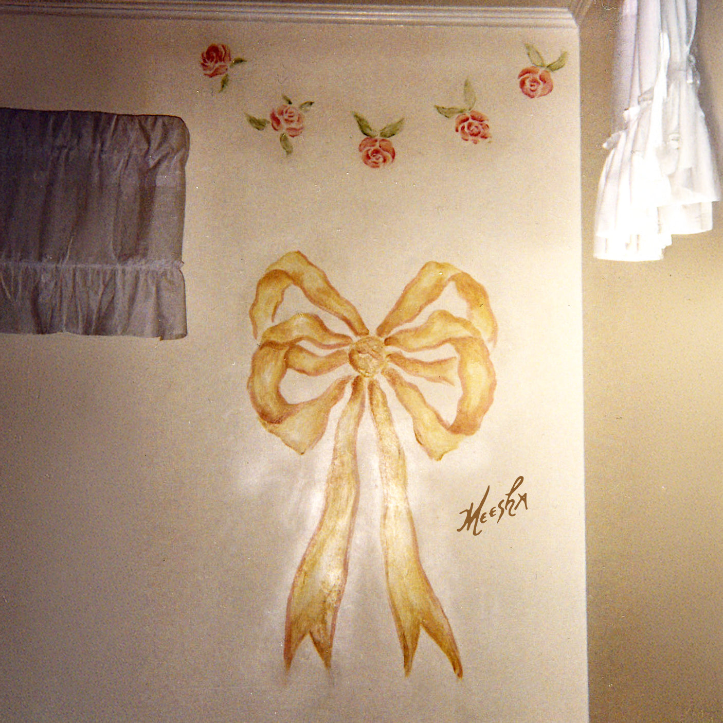 Golden bow mural in children’s room