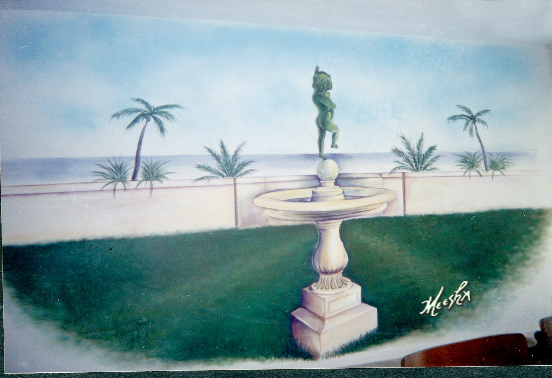 Miami beach mural with park and European fountain