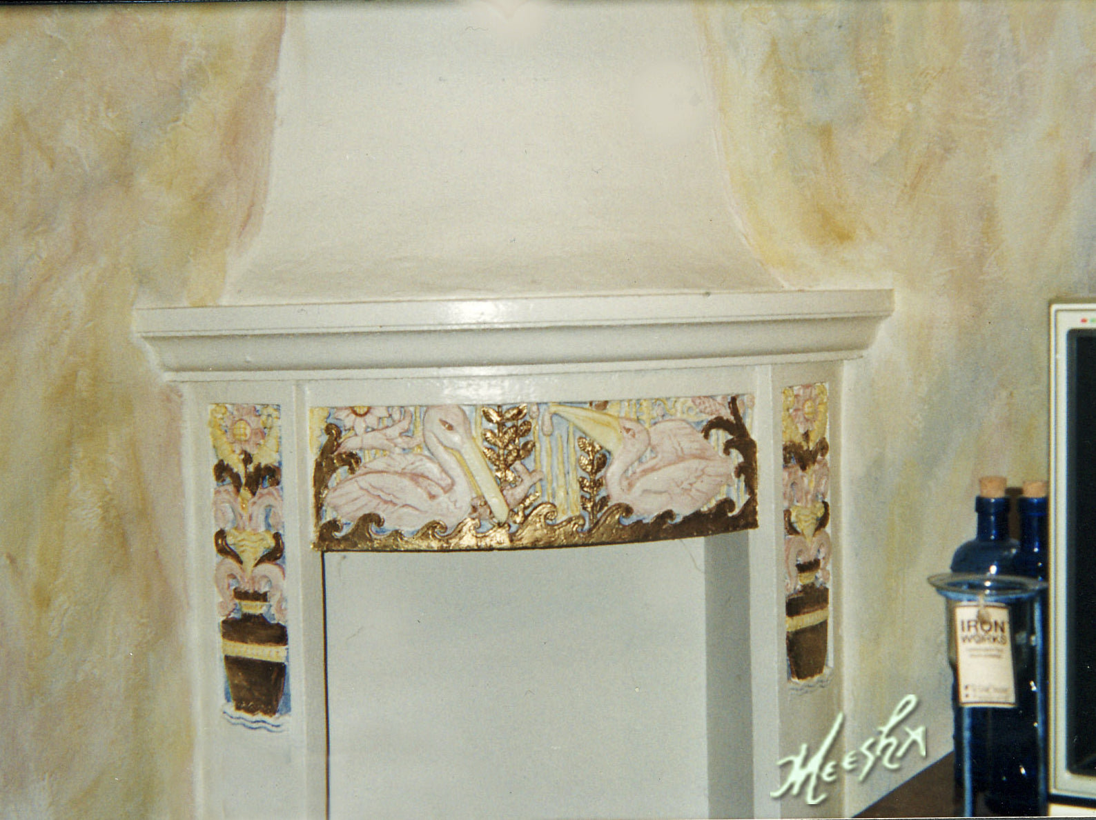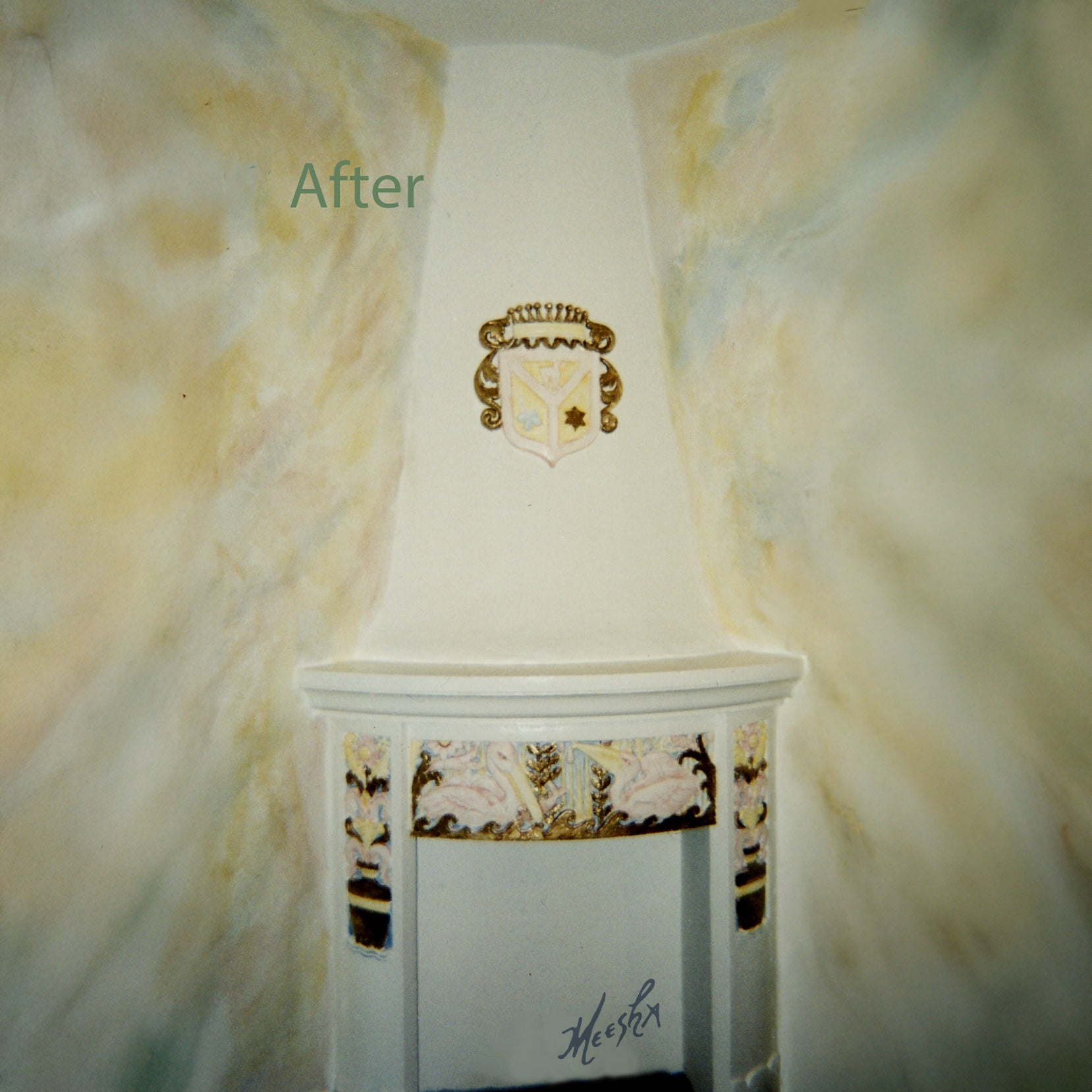 After – Gold leaf and pastel-colored Art Deco fireplace in Miami Beach